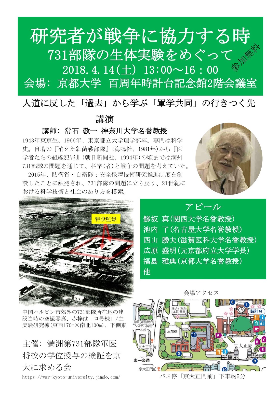 研究者が戦争に協力する時−731部隊の生体実験をめぐって― (京都大学) 常石敬一・神奈川大学名誉教授講演